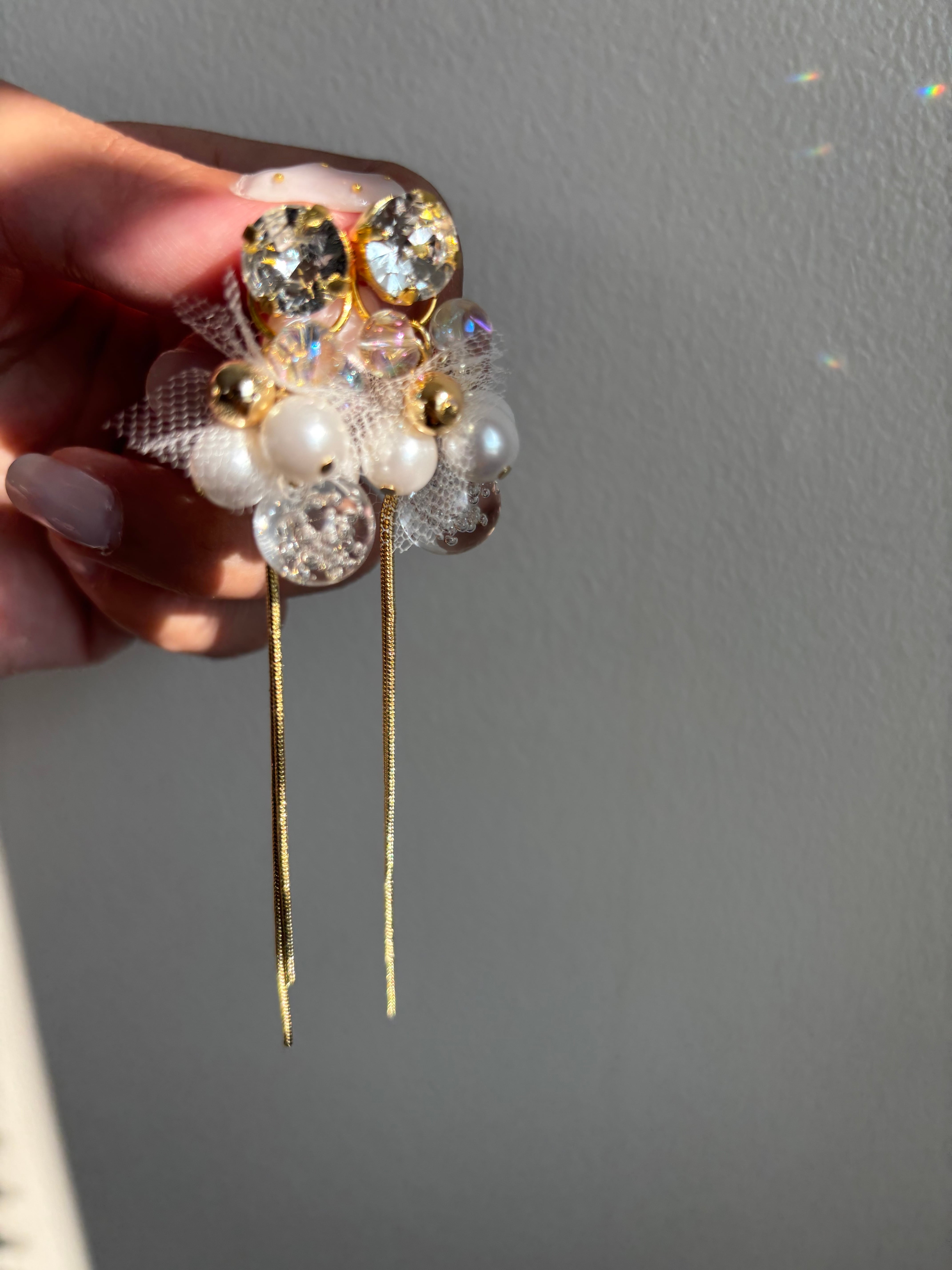 ビジュー、パール、クリア素材の透明感を