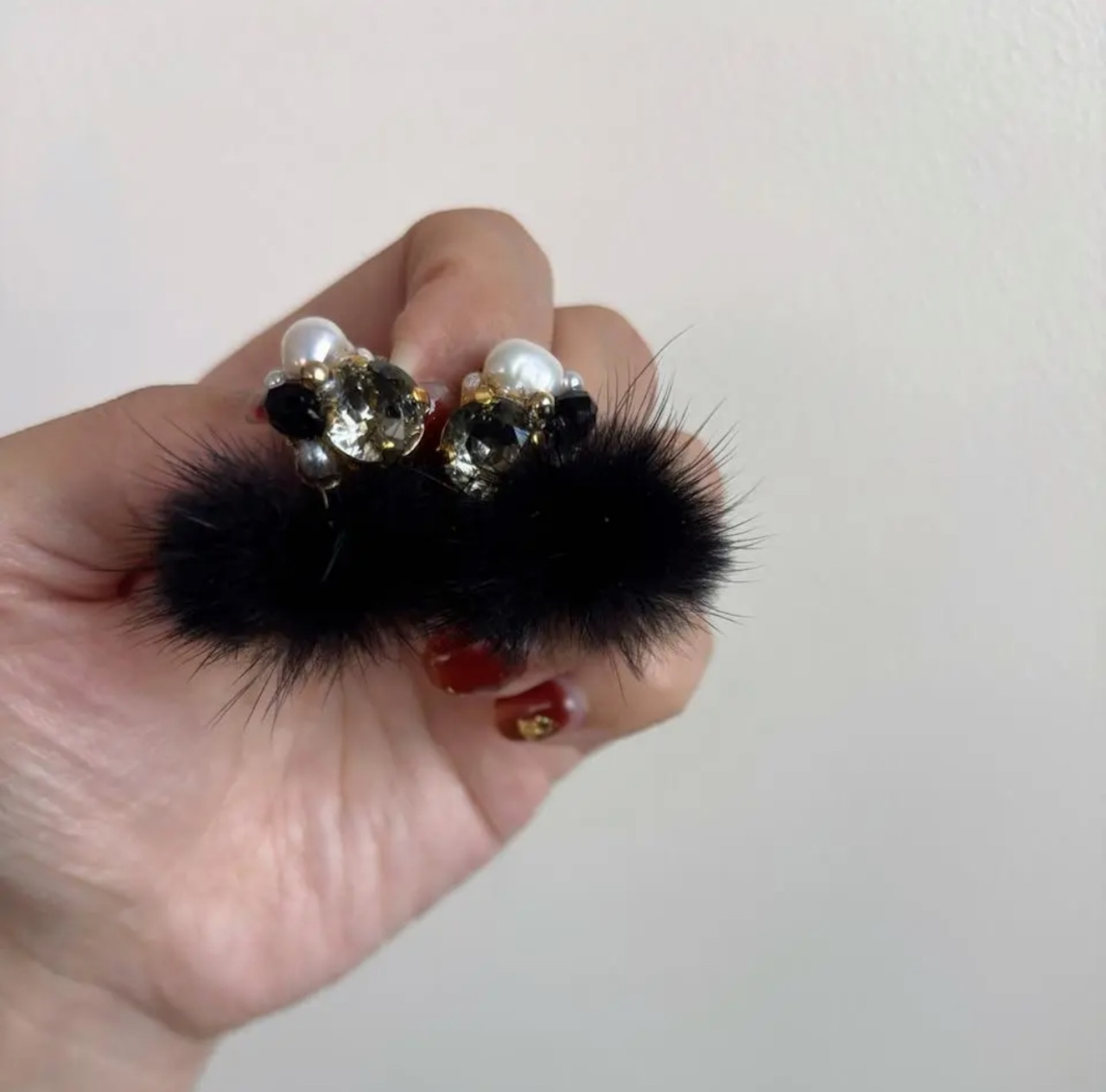 ふわふわのファーときらめくビジューを組み合わせた、
