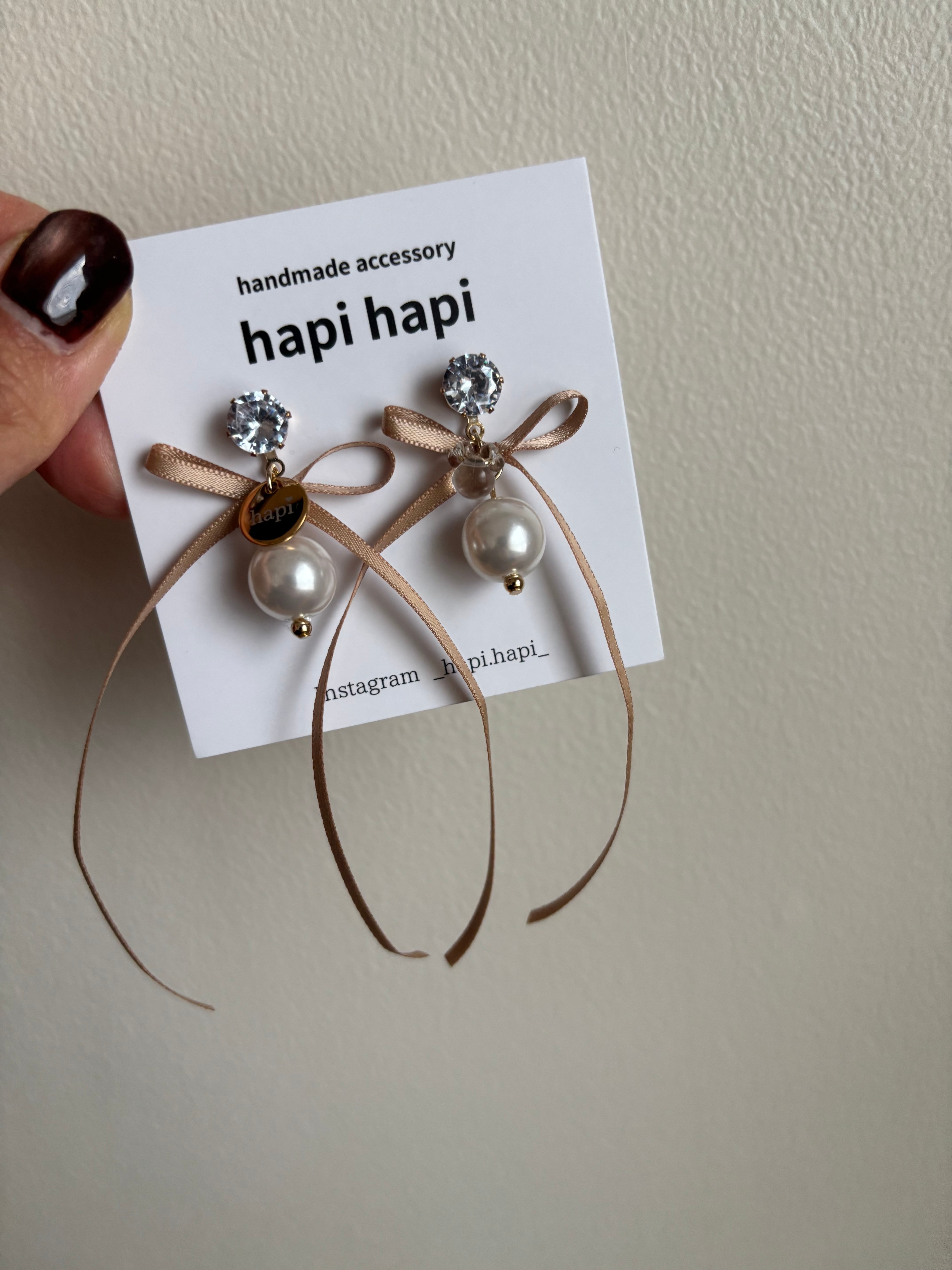 リボンのお色がブラック/ホワイト/ピンクベージュからお選びいただけます